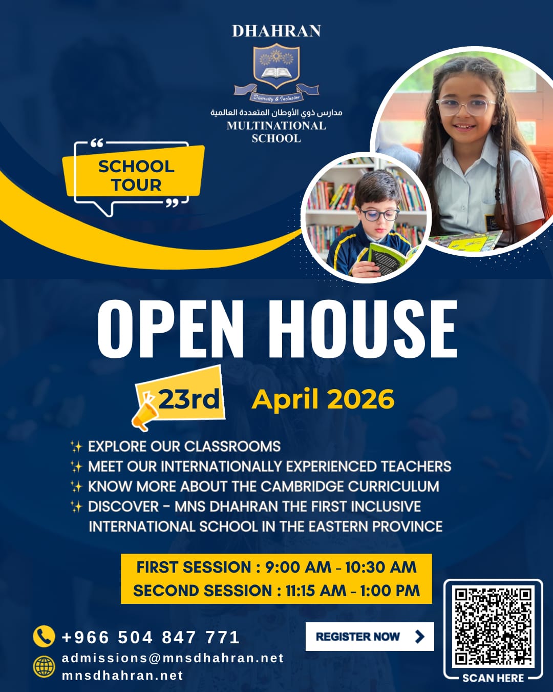 Dear Parents, We are pleased to invite you to the Open House at MNS DHAHRAN. Join us to explore our campus, meet our dedicated teachers , and learn more about
